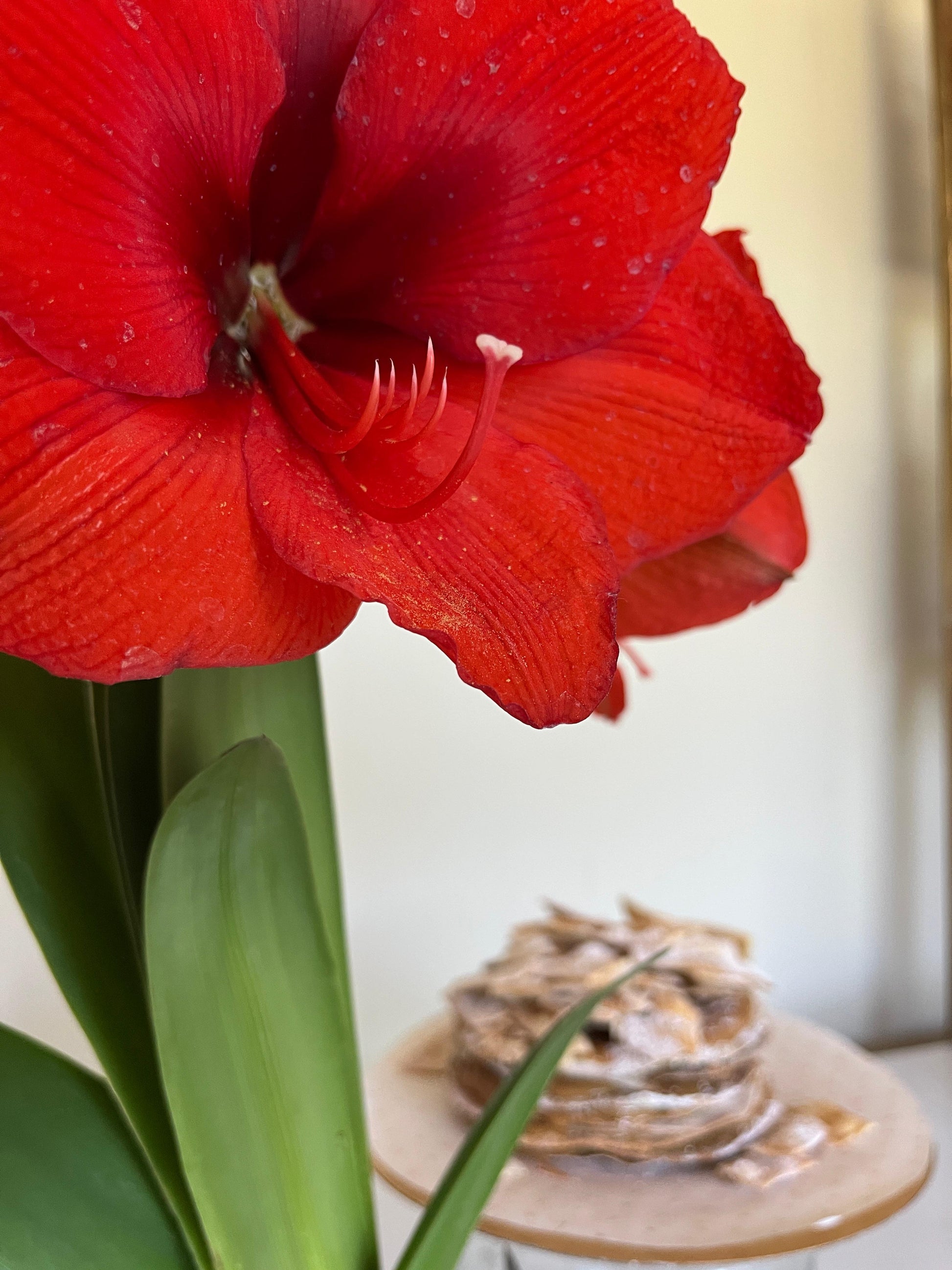 Amaryllis: Puedes traspasarlo a un florero mientras dure su floración o simplemente sobreponerlo en algún recipiente. Mantenerlos en lugares frescos -nunca con luz directa o cerca de una fuente de calor- y el riego depende de la humedad de la tierra.
